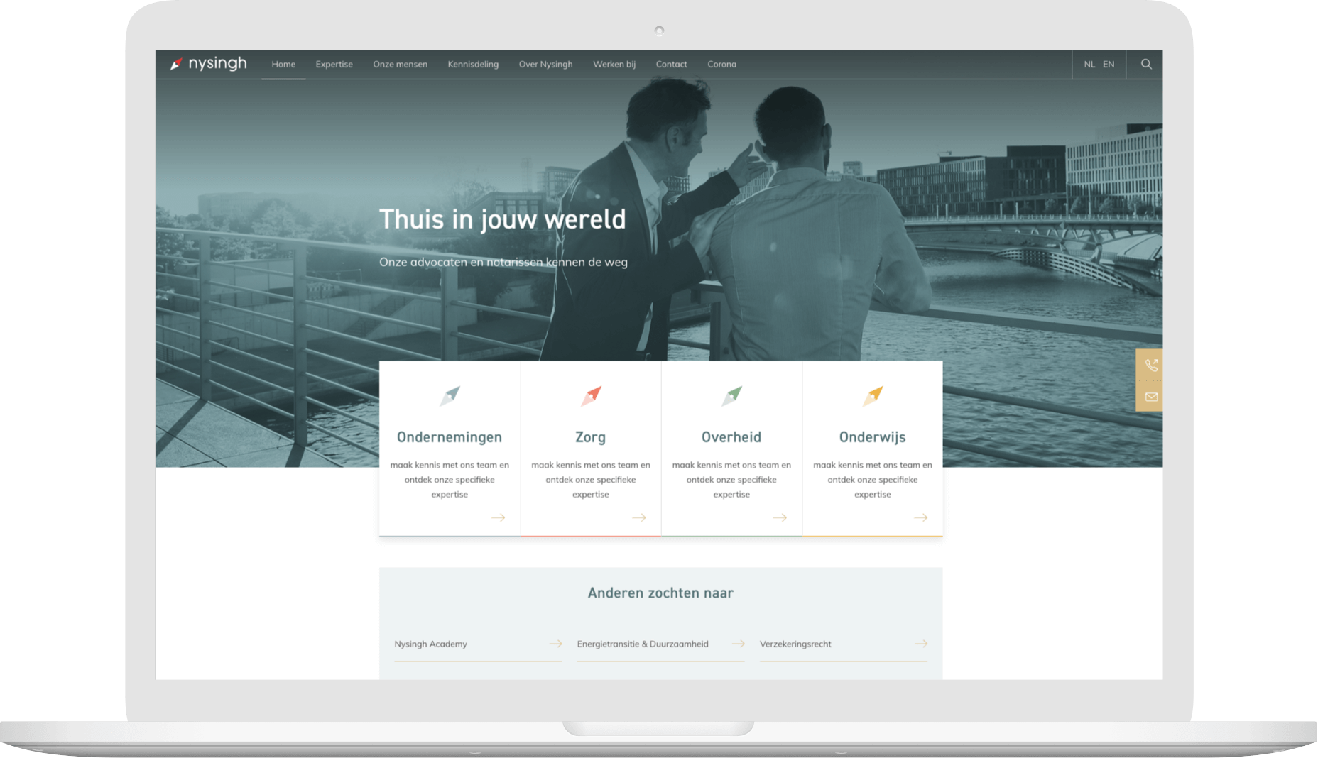 De nieuwe website Nysingh.nl ziet er strak en verzorgd uit. Dat vond ook de jury van Mywinningwebsites.com. Door gebruik te maken van animaties, nodigt de site uit tot interactie. Ondanks de grote hoeveelheid content, is de back-end heel beheersbaar geworden. En het mooiste van alles… Sinds de release van de nieuwe website is het aantal bezoekers aanzienlijk gestegen, zijn de SEO-prestaties verbeterd en vrijwel alle conversieratio's gestegen.